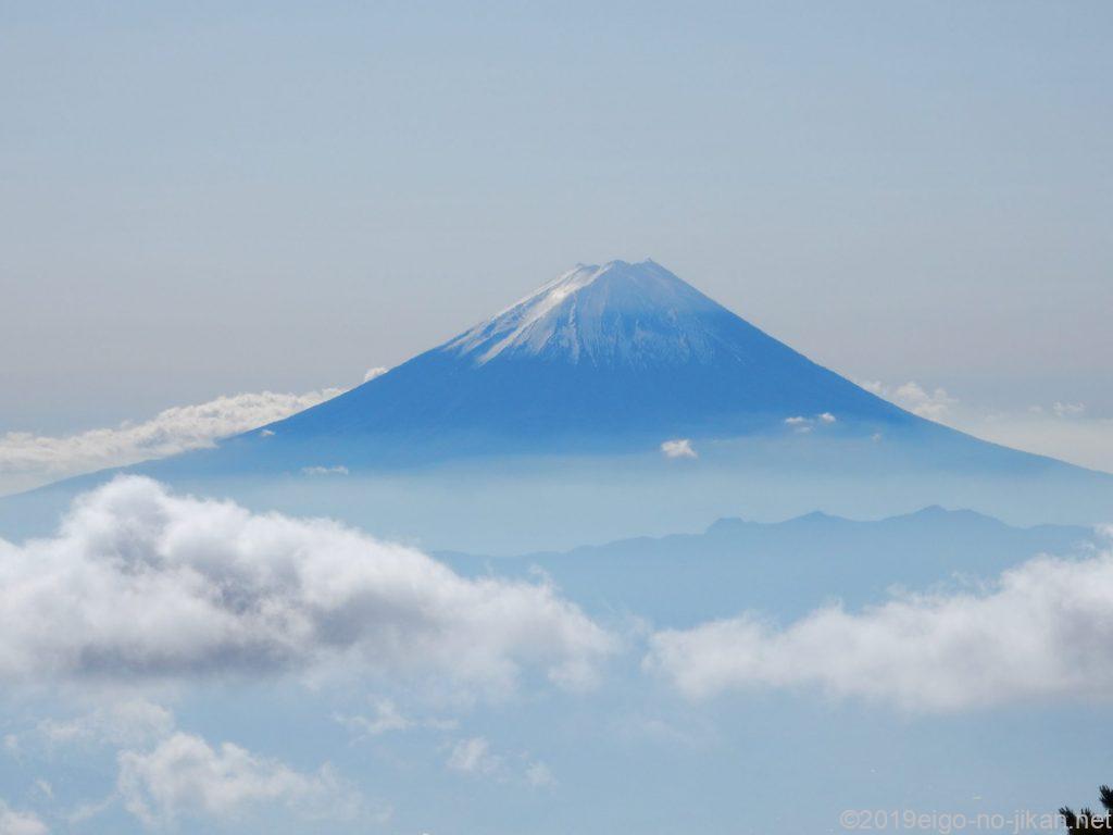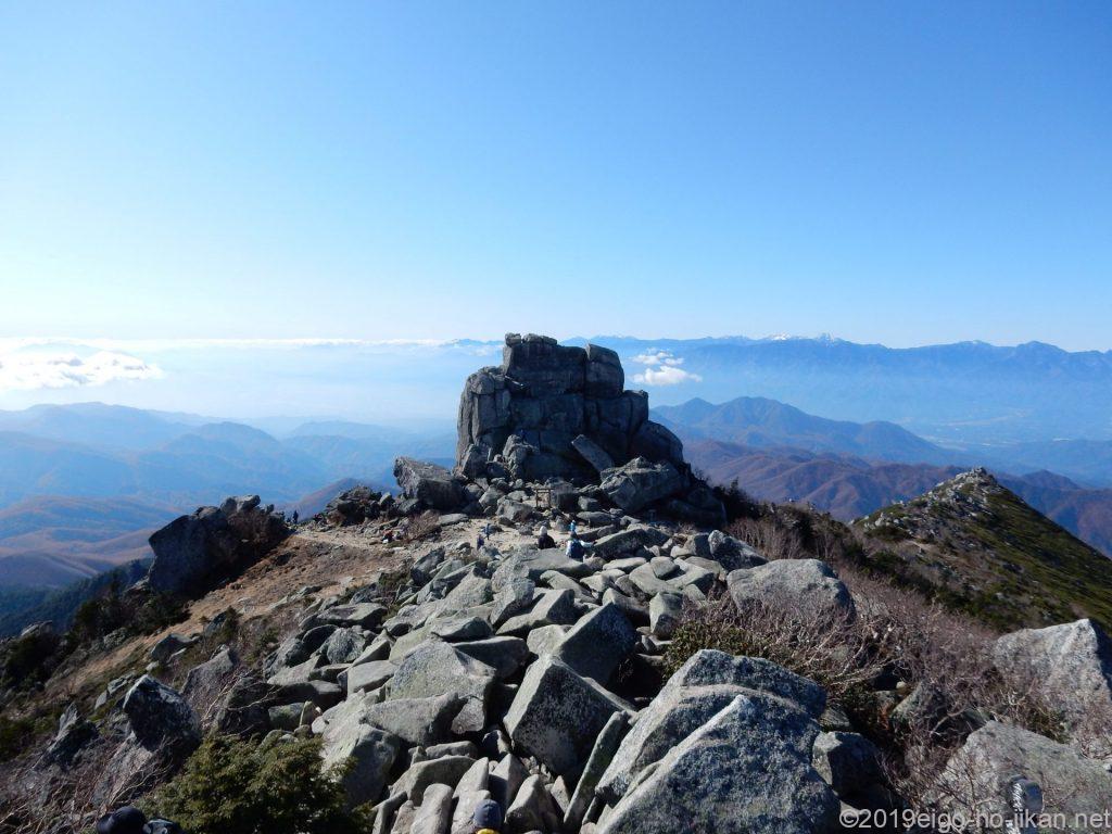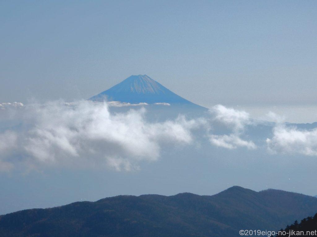 岩の道をしばらく進むと前国師ヶ岳(13:35)。ここからも富士山がよく見えました。
