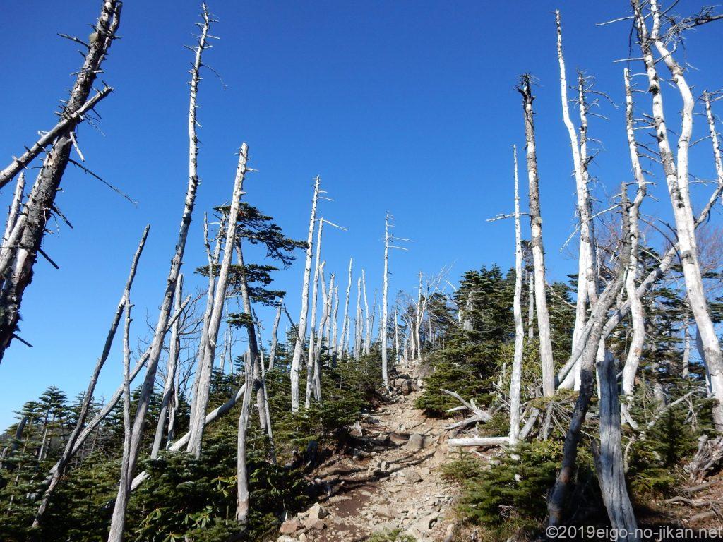 しばらくは樹林帯を行きます。標高が高いせいか、普通に歩いているのに息があがります。