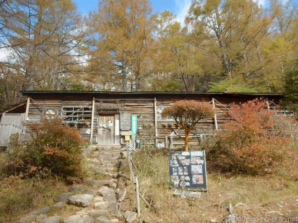 富士見平小屋到着です。(10:31) ここで休憩をしました。小屋の前に餌が置いてあるのか、小鳥たちが次々と小屋の窓の前に降り立っては餌をついばんでいました。