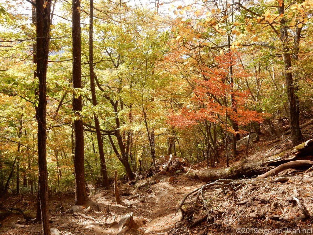 しばらく樹林帯を緩やかに登って行き、林道を横切ります。そこからさらに登って行くと富士見平小屋・・・なのですが、今回はぼーっとしていて途中から左手にのびる「黒森コース」へとうっかり入り込んでしまいました。